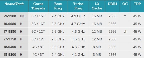 9. Nesil Intel Core İşlemciler (Mobil)