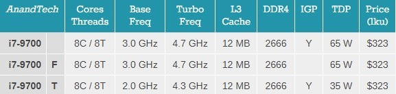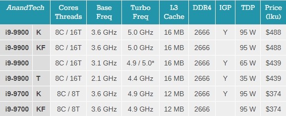 - Core i9, 8 çekirdek, 9900 ve 9700