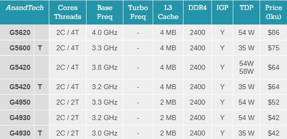 - Pentium Gold, 2 çekirdek,